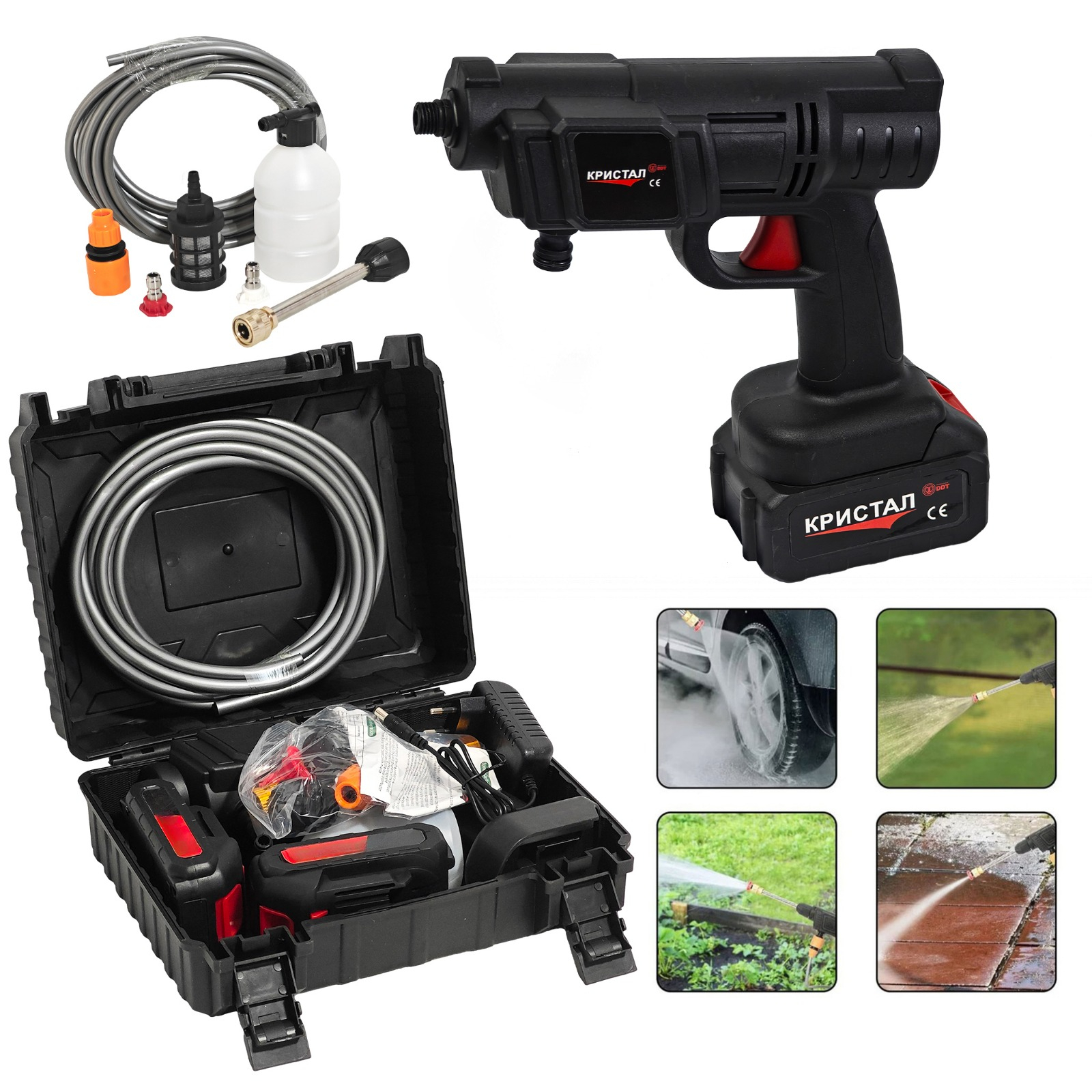 Aparatul de spălat cu presiune DDT- KRISTAL este o soluție modernă, portabilă și extrem de practică pentru curățarea eficientă a diferitelor suprafețe, fără a fi nevoie de racordare la rețeaua de apă sau la priză. Funcționează pe bază de acumulator, ceea ce îl face ideal pentru utilizare în zone fără acces direct la utilități. Datorită designului compact, greutății reduse și accesoriilor incluse, acest aparat este potrivit atât pentru uz casnic, cât și pentru utilizatori care doresc mobilitate și rapiditate în operațiunile de curățare.