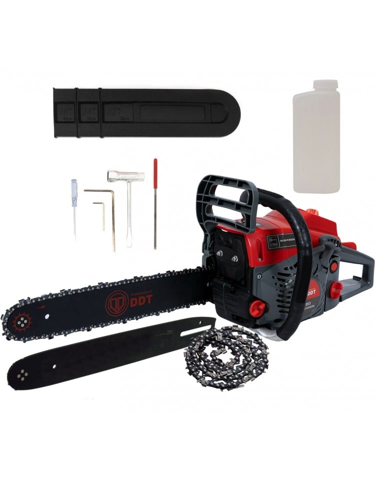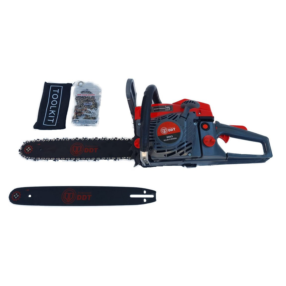 Drujba(Motofierastrau) pe benzina , DDT, 6 cp, 2 x lama 40 cm, 2 x lant 32 dinti Drujba motofierastrau DDT, dotata cu frana din metal si demaror, este facuta pentru a rezista ani si in cele mai grele conditii. Drujbele DDT fac parte din brandul DDT, brand specializat pe utilaje profesionale si semiprofesionale de calitate superioara, ideale pentru uz intens dar si pentru lucrari care necesita delicatete. Testarea produselor a fost riguroasa inainte de a intra pe piata, de aceea drujbele DDT rezista multi ani.