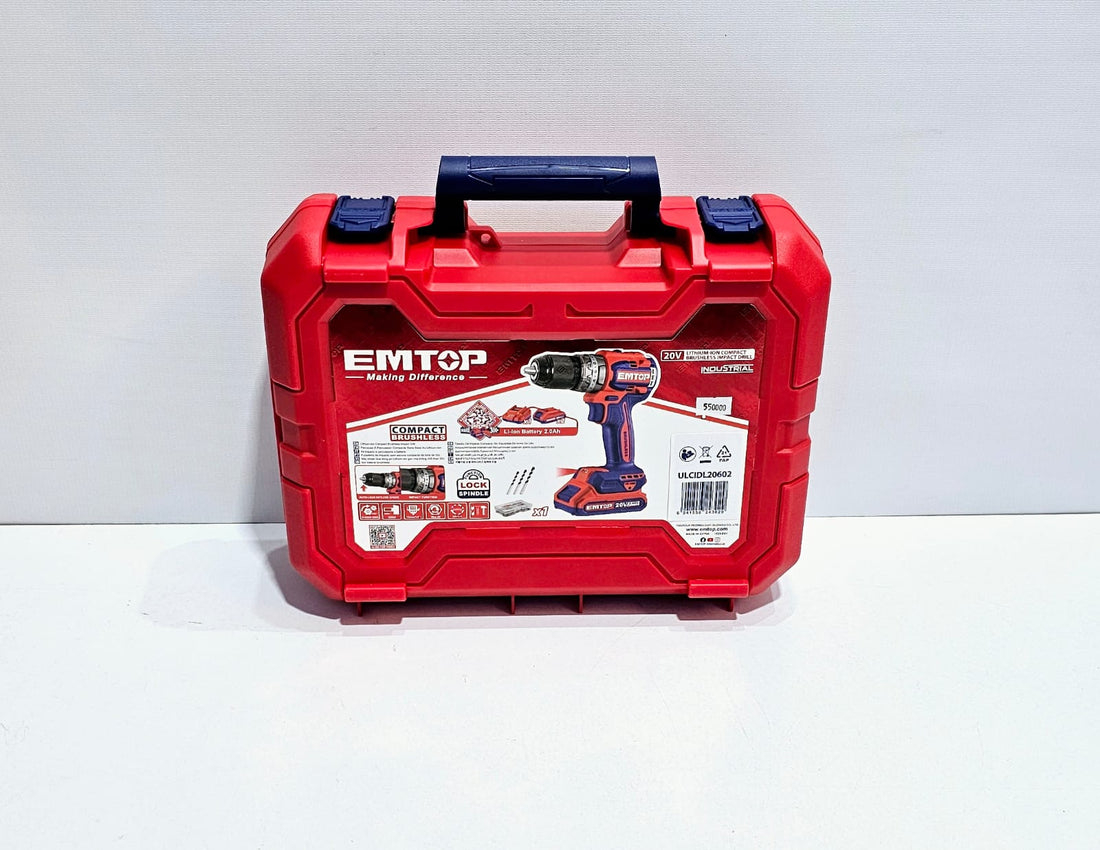 Masina de gaurit si insurubat cu 2 acumulatori 2.0AH, motor fara perii (brushless), 60Nm, 1/2", 47 accesorii, cutie transport - ECDL20602, EMTOP
