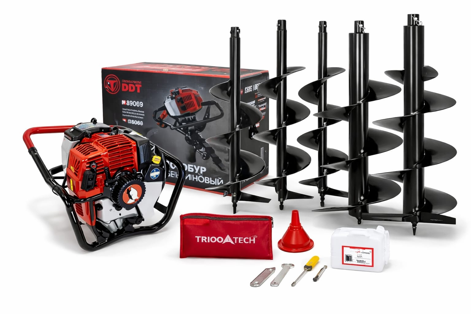 Continut pachet: 1 x Burghiu 150 x 800 mm, 1 x Motor motoburghiu, Carburator cu diafragma - pornire rapida, 1 x Burghiu 100 x 800 mm, 1 x Burghiu 200 x 800 mm, 1 x Burghiu 250 x 800 mm, 1 x Burghiu 300 x 800 mm