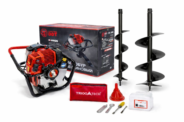 Un motoburghiu DDT te scuteste de a mai folosi cazmaua pentru sapat gauri adanci si inguste. Stiti despre ce vorbesc. Mai ales la “plantat” parii in vie, sau pomii de livada, sau chiar la constructii in gospodaria rurala. Pentru orice activitate vei avea nevoie de diamentre diferite ale burghiului. Modelul din aceasta pagina este dotat cu burghiul sau de 100 mm si 150 mm diametru si 800 mm lungime, considerat destul de lung pentru cerintele de adancime chiar si a parilor din beton armat folositi in restaurarea randurilor de vita de vie.